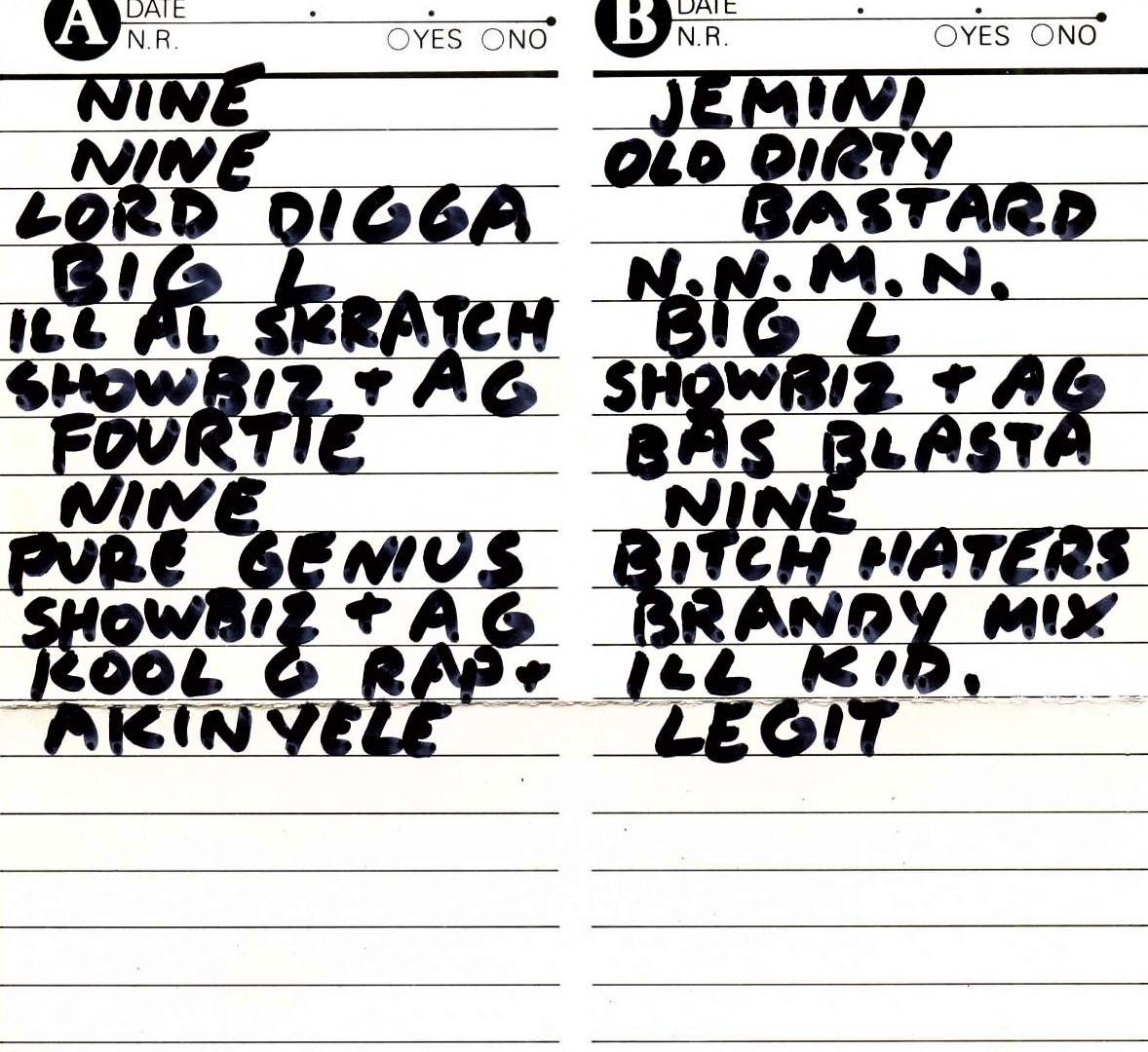 279 plays tracks off the Showbiz & AG Goodfellas on cassette [Incl a version of Time For that never made it to the finished LP]. He drops cuts off Big Ls alblum from tape too [hence the not so crispy quality at the top of the show]. He plays freestyles from the Freestyle Frenzy Vol 2 LP, and a Sauce Money track with Jay-Z that didnt get a street date until two years later. There are also tracks off New Jersey Drive Vol.2, some Masta Ace and plenty of cuts from the Nine LP